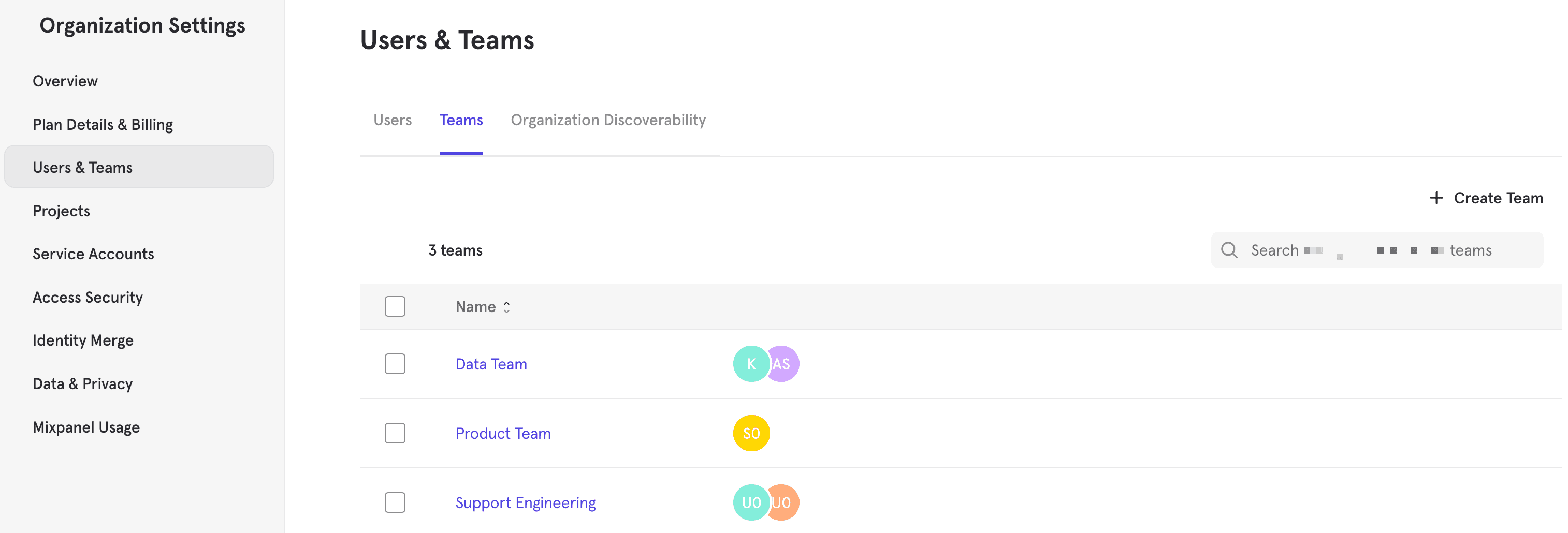 1. Under “Organization Settings”, click Users & Teams.